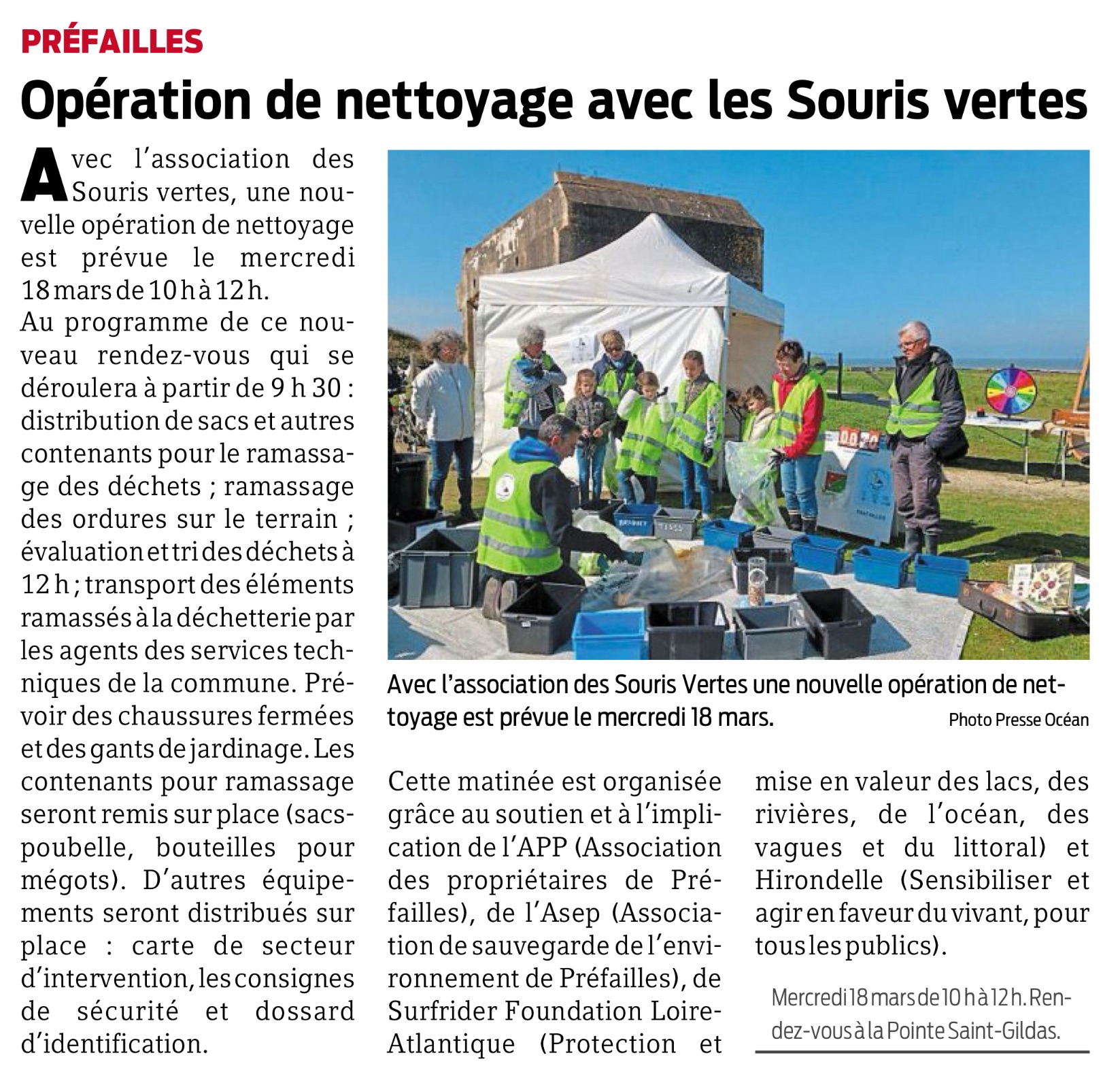 Presse Océan aborde l’opération de nettoyage de la Pointe Saint Gildas avec les Souris Vertes. Cette opération se fait avec la participation de l’ASEP.